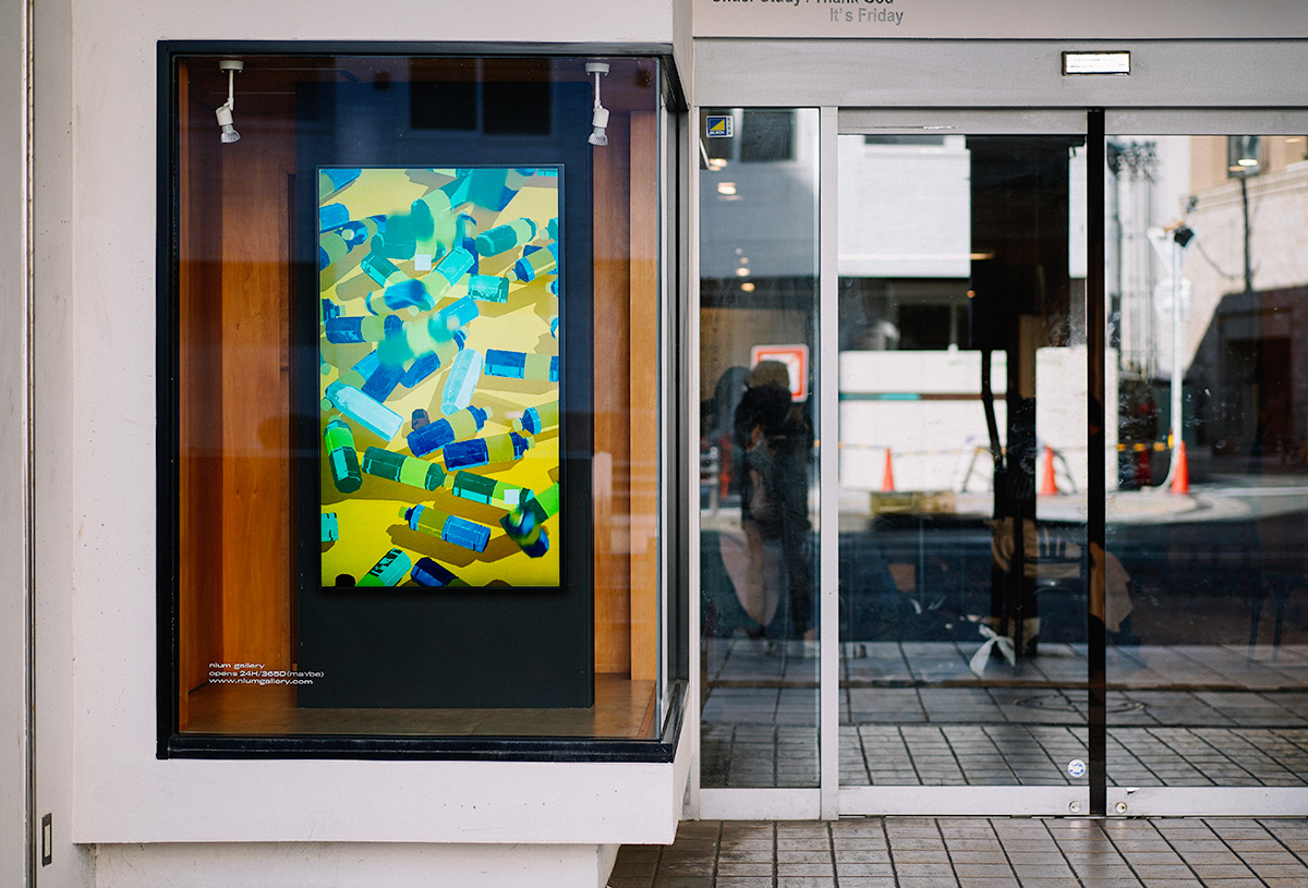 nium gallery is a tiny art gallery that is made of only one digital monitor installed in a shop window. The concept consists of three “openness” - which is “open to the city”, “open to everyone” and “opens 24H/365D”. The arts in this gallery can be appreciated by any pedestrian who cross in front of the shop window. We aim to make this gallery a truly public gallery to give a little bit of fun for the street.